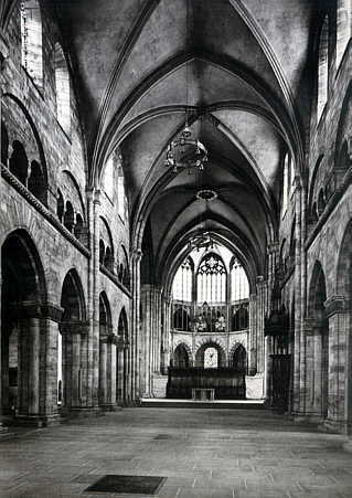 Während das Mittelschiff beim Erdbeben von 1356 geringe Schäden erlitt, wurde der Chor anschließend grundlegend umgestaltet und erhielt die Form eines Umgangschors.