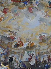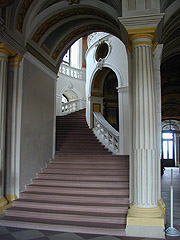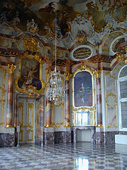 Beim Wiederaufbau des Bruchsaler Schlosses nach 1950 wurden nur die Prunkräume des Corps de Logis wieder originalgetreu rekonstruiert. Das sind die große Treppe, der oben als oberes Foyer dienende Kuppelsaal und die beiden vom Kuppelsaal ausgehenden großen Festsäle, der Marmor- und der Fürstensaal. Die zerstörten Deckengemälde wurden anhand der Aufnahmen, die vor dem Krieg gemacht worden waren, möglichst nahe am Original neu geschaffen.
