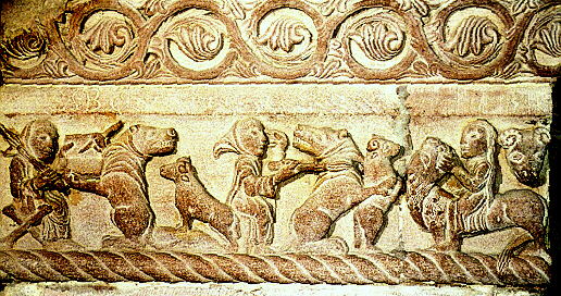 Romanischer Fries im Durchgang zur Nikolauskapelle