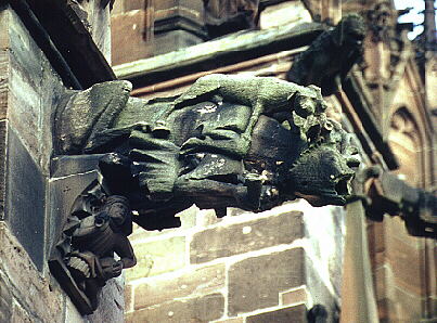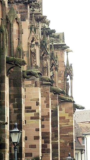 Wasserspeier dienten zunächst rein technisch dazu, das vom Dach kommende Wasser in einer Entfernung von der Mauer nach unten zu leiten, die dem Mauerwerk nicht schadete. Dann aber konnte sich die Fantasie des Bildhauers der Fratzenhaftigkeit bemächtigen.