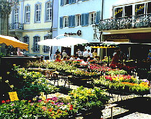 Hier bieten täglich Blumen- und Gemüsehändler