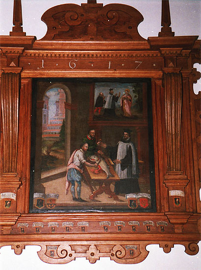 etstammt Umbauten des 15. Jahrhunderts. Im Innern ein Zyklus von Tafelbildern von Johann Melchior Waldkirch