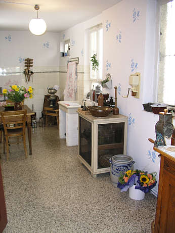 In der Mitte der Spülstein aus Porzellan (ehemals Sandstein),
