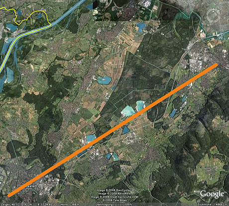 3. Suche bei Google-Earth die Schloss-Achse, die Stadt,