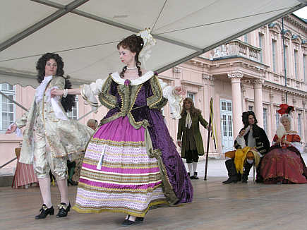 Das Tanzensemble I Danzatori Palatini zeigt vor den hohen Herrschaften ihr Können.