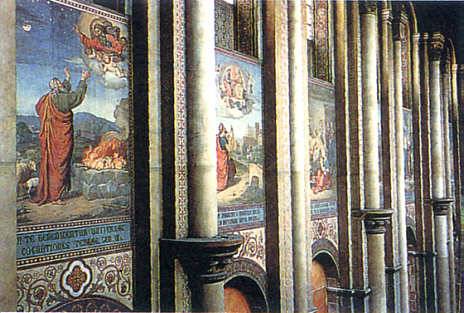 1846 - 1853 wurde der Dom auf Veranlassung des bayerischen Königs Ludwig I. unter Leitung von Johannes Schraudolph mit großformatigen Bildern aus der biblischen Geschichte und mit reicher Ornamentik ausgemalt. |