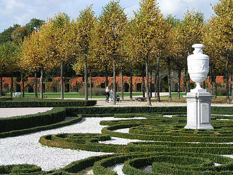 Die Broderien des Zirkelparterres, im Hintergrund die Treillagegänge