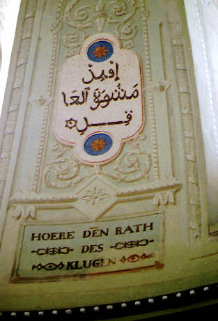 Der Spruch oben: "Erwirb dir Gold, soviel du brauchst / und Weisheit soviel du kannst"