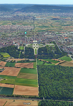 Auf dieser Achse liegt das Schwetzinger Schloss, sie bildet