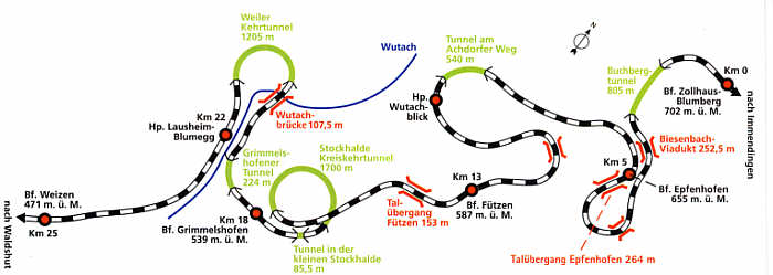 Buchbergtunnel. Es folgen in reizvoller Abwechslung: