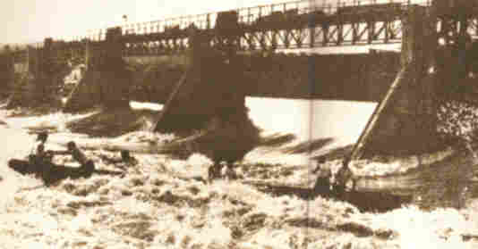Vorsichtig wird dann das Boot auf das Stauwehr zu gerudert und die Bomben
