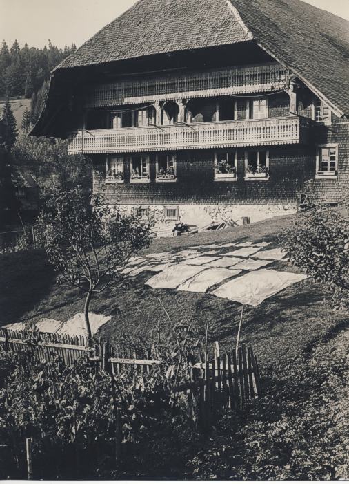 Vor dem Haus ist Wäsche zum Bleichen ausgelegt