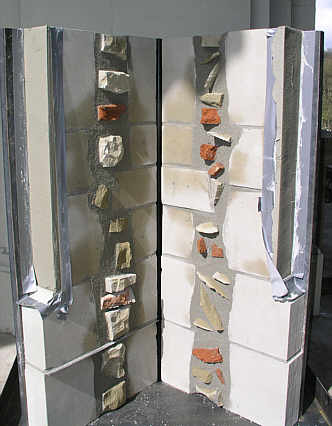 Schnitt durch ein Schalenmauerwerk, bei dem nur die äußeren