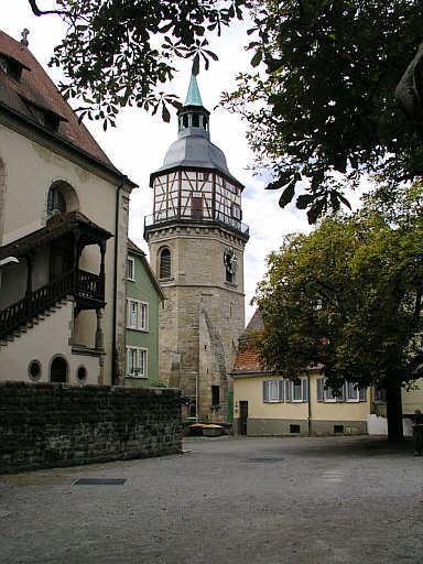 Der 1614 errichtete Stadtturm war als Bestandteil des Schickhardtschen Schlosses geplant und enthält im Untergeschoss den gotischen Chor der Michaelskirche.