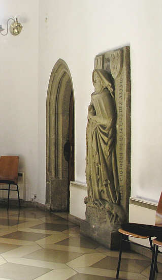 Grabstein der Anna von Weinsberg, 1413. Die Herren von Weinsberg waren Stadtherren von Neuenstadt bis zum Verkauf an Kurpfalz 1450