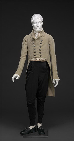 Oben: Herrenanzug mit Jacke und Pantalons, 1805-1810