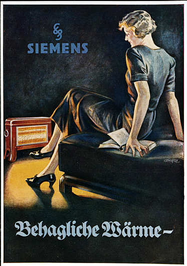 Heizofen Siemens Werbegrafik für Plakate und Zeitschriften „Behagliche Wärme“, 1934 Repro, Siemens-Schuckertwerke © Siemens Corporate Archives