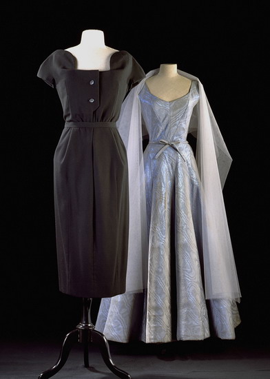 Links: Cristobal Balenciaga, Cocktailkleid, ca. 1957,