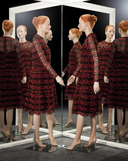 (Ausführung), zwei identische Nachmittagskleider, Maschinen-Spitze,