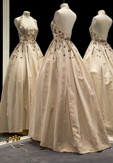 Edward Molyneux, Abendkleid, 1949, Seidenrips, bestickt mit Perlen, Pailletten und Strass, K 140-1956. Getragen von Else Rijkens.