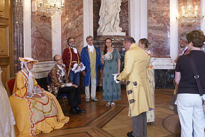 in barocke Kostüme gesteckt und erst einmal mit der barocken Etikette