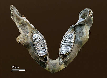 Nahezu kompletter Unterkiefer eines eiszeitlichen Mammutbullen
