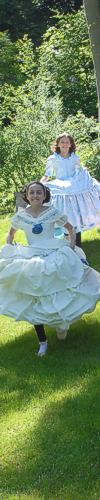 schlüpfen dafür in spitzenbesetzte, weite Krinolinenkleider,