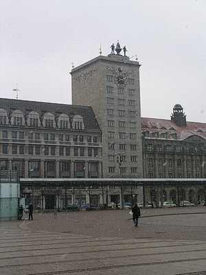 Uhrturm des Bankhauses Koch am Augustusplatz / Messehaus Specks Hof