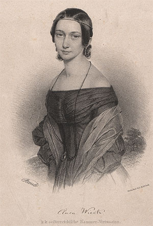 Mitte: Clara Wieck, 1838. Lithografie Andreas Staub, 1838. Robert-Schumann Haus Zwickau