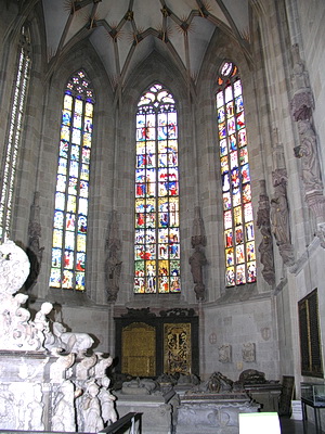 Was die Grablegen betrifft, sind die Epitaphien der Württemberger Herzöge in Tübingen ebenso noch erhalten wie die der badischen Markgrafen, die hier 1535 ihre Residenz aufschlugen und die Pforzheimer Stiftskirche zur Schlosskirche machten. Die Heidelberger Grablege wurde 1693 nahezu vollständig zerstört - 45 Epitaphien zum Teil außerordentlichen Ausmaßes von MItgliedern der kurfürstlichen Familie waren hier aufgestellt. Man muss heute schon nach Meisenheim am Glan oder nach Simmern in den Hunsrück, um eine Ahnung davon zu bekommen, wie sich das Selbstbewusstsein der Pfalzgrafen manifestierte. Dort aber sind es Seitenkapellen, die die Epitaphien aufnahmen, nicht der Chor der Kirche.