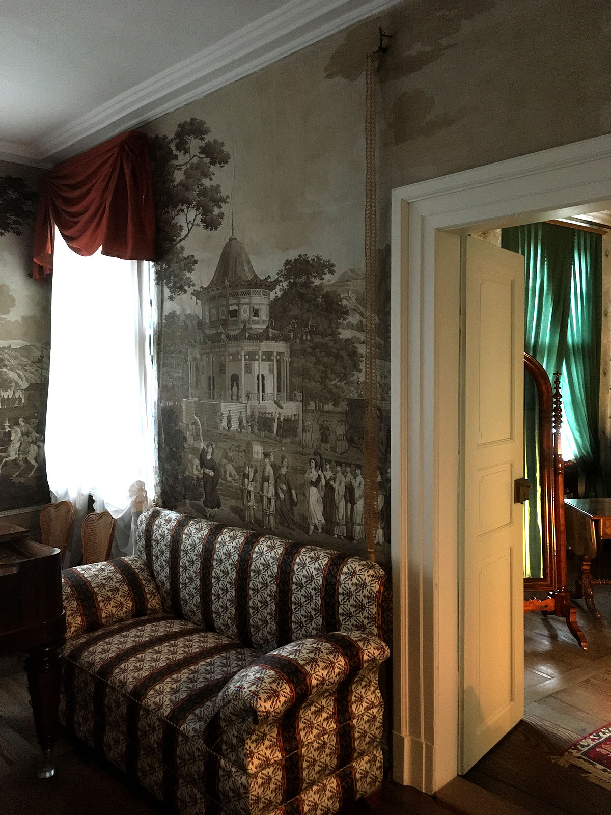 Unten: Panoramatapete mit Szenen aus dem griechischen Befreiungskrieg