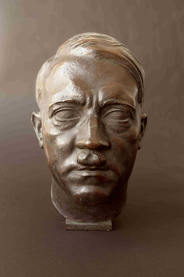 Philipp Flettner, Porträtkopf Adolf Hitlers, Bronzeguss, 1939/40. Die Büste wurde für den großen Saal des Kaiser-Wilhelm- Instituts im faschistischen Rom in Auftrag gegeben. 1944 befreiten amerikanische Soldaten Rom, vermutlich geriet die Büste in diesem Zusammenhang als Beutekunst in die USA, von wo sie das Dreiländermuseum für seine Sammlung ankaufte. Sammlung Dreiländermuseum (PFle46)