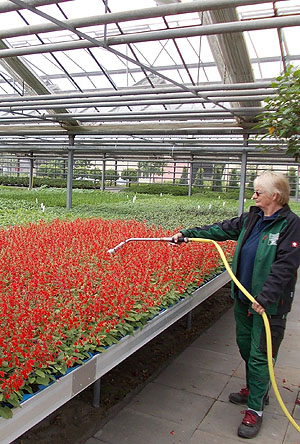 Links: Vorbereitungen für die Auspflanzung in den Gewächshäusern.