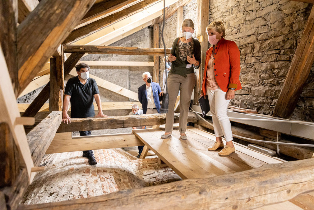 Darunter: Ministerin Razavi (rechts) besichtigt das Münster "Unserer Lieben Frau" in Radolfzell, dahinter: Dr. Christine Schneider (Landesamt für Denkmalpflege)