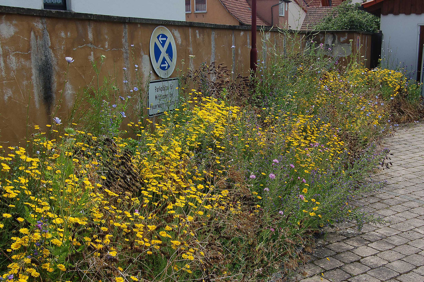 Von oben nach unten: Blühstreifen auf Firmengelände