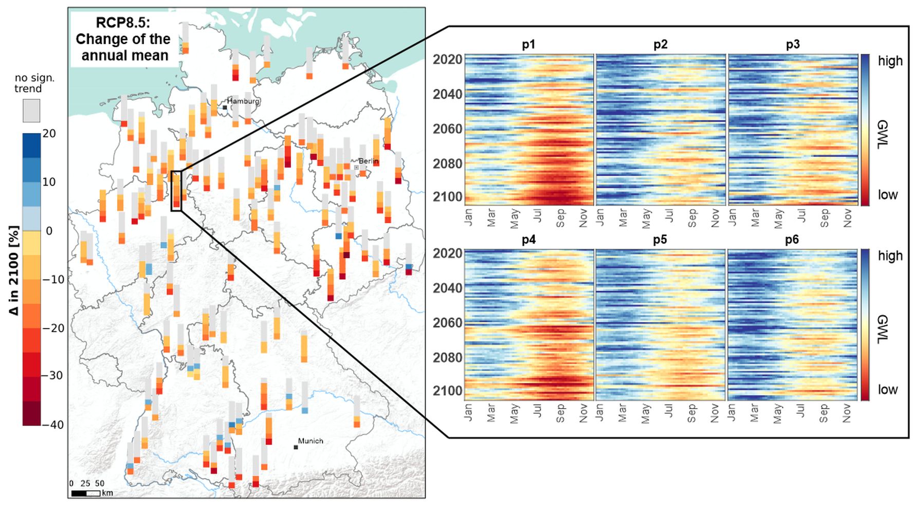 Andreas Wunsch, Tanja Liesch & Stefan Broda: Deep learning shows declining groundwater levels in Germany until 2100 due to climate change. Nature Communications, 2022. DOI: 10.1038/s41467-022-28770-2.