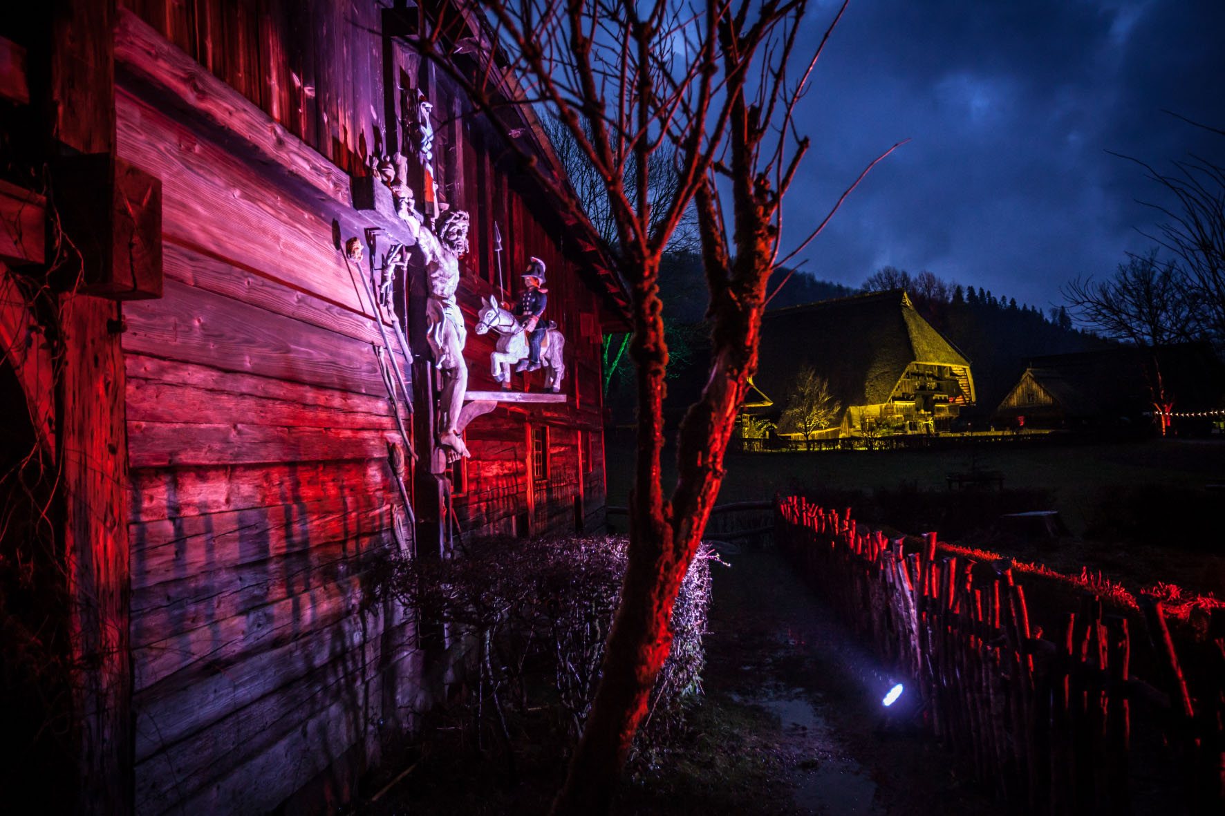 (sfv) Eine kunstvoll ins Licht getauchte Schwarzwälder Häuserlandschaft im stimmungsvoll beleuchteten Ambiente der historischen Schwarzwaldhöfe erwartet die Besucher beim diesjährigen Weihnachtsdorf am dritten Adventswochenende im Schwarzwälder Freilichtmuseum Vogtsbauernhof in Gutach. Auf dem sieben Hektar großen Museumsgelände verteilen sich vom 9. bis 11. Dezember rund 40 Hütten und Stände mit traditionellem Handwerk und heimischen Produkten. Die imposanten und beleuchteten Schwarzwaldhöfe fügen sich so zu einem abendlichen Weihnachtsdorf, das seine Gäste zum Flanieren einlädt.