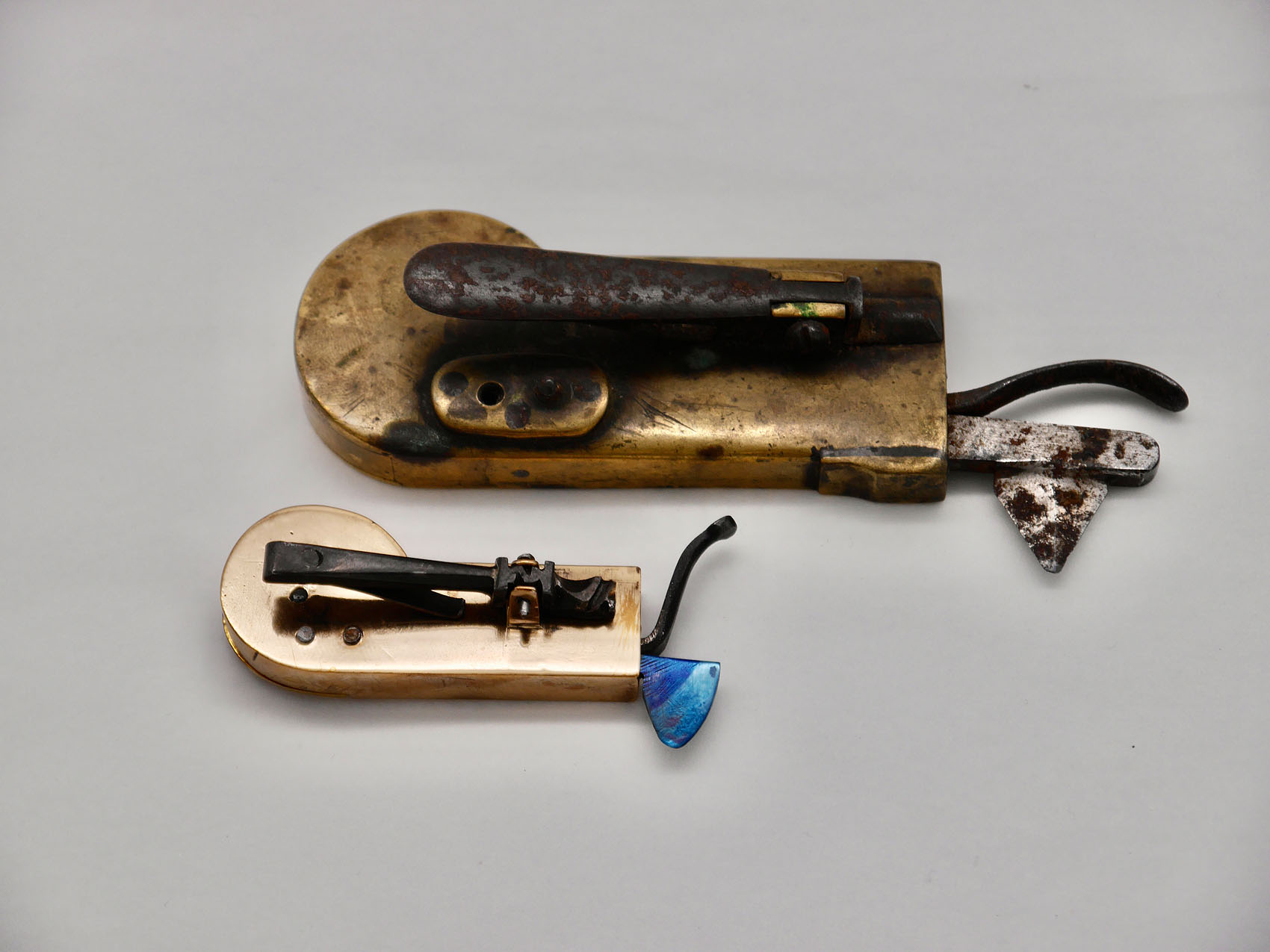Aderlass-Schnäpper zum Öffnen einer Vene bei Mensch (unten) und Tier (oben), Mitte 19. Jh., Lehrsammlung des Instituts für Geschichte und Ethik der Medizin, Universität Heidelberg
