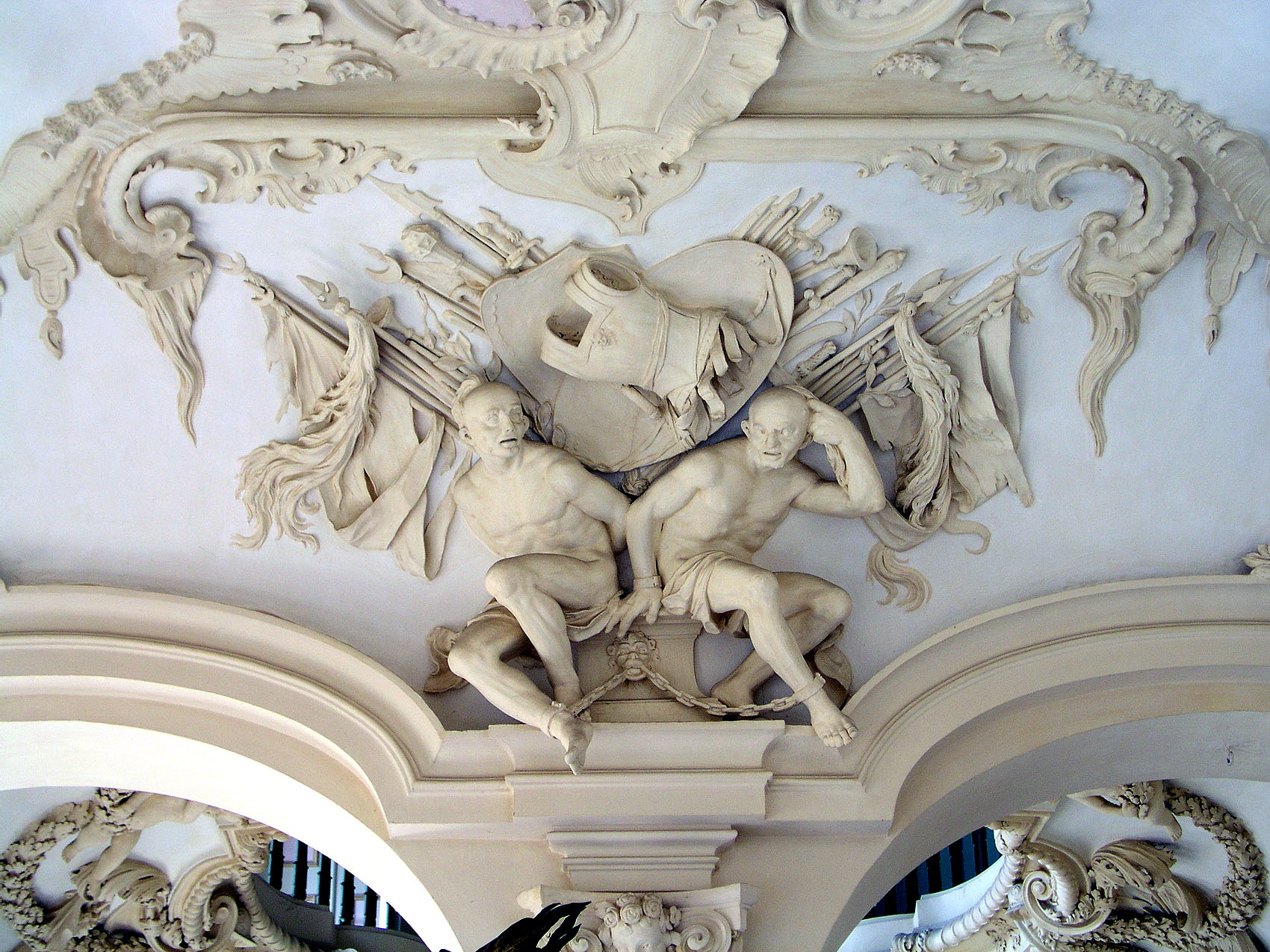 Schloss Rastatt, Gefangene Feinde als Ikone des Siegs. Stuckdekoration im Ahnensaal. Foto: kulturer.be