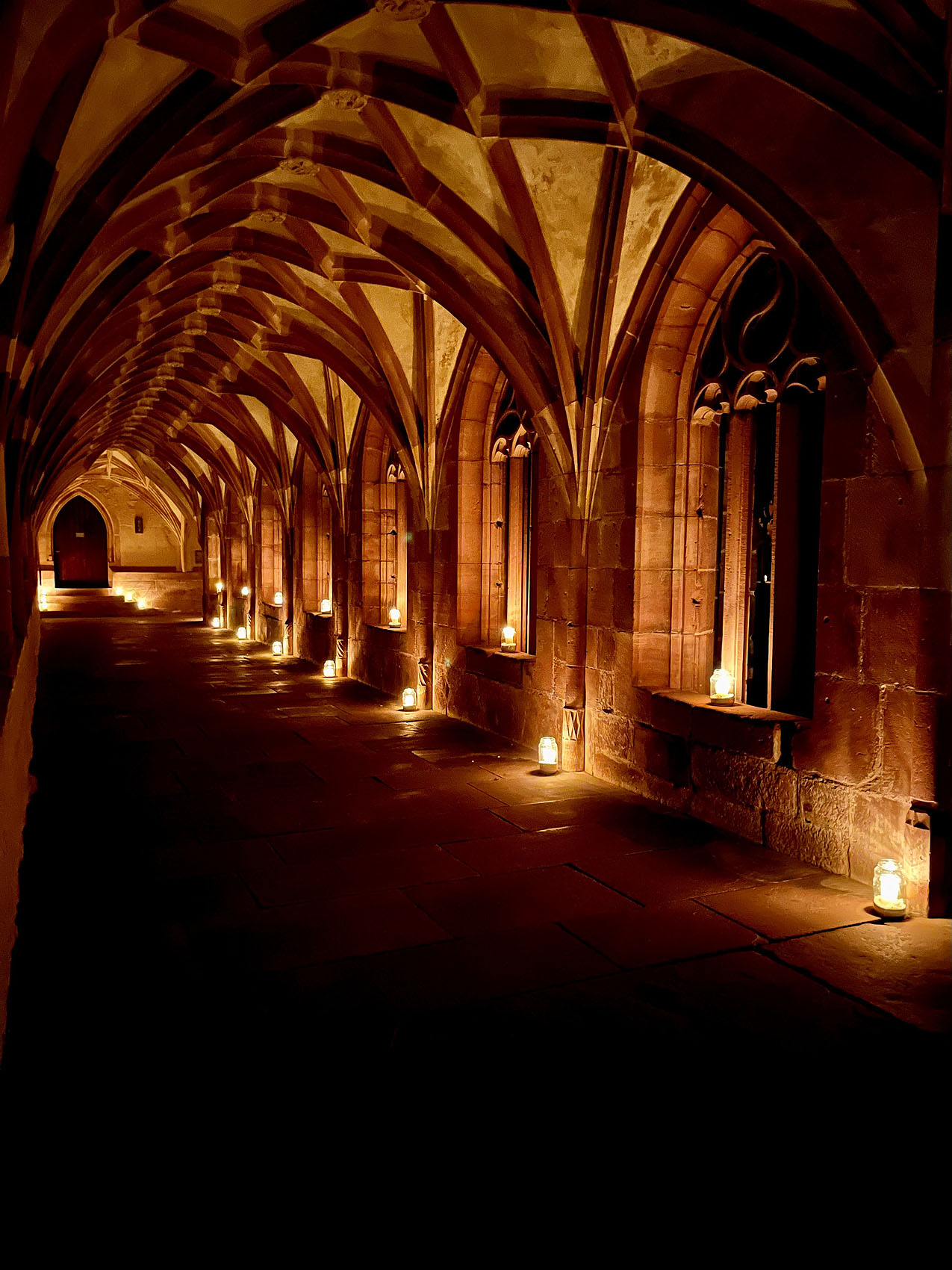 Kreuzgang des Klosters Alpirsbach im Licht der Kerzen. Foto: Julian Bluemle, ssg