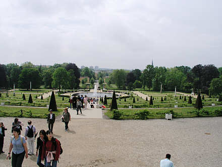 der Oberen Terrasse des Weinbergs auf den Brunnen im Gartenparterre.