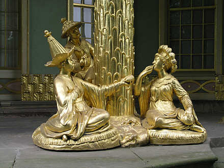 Sitzgruppe: Melonen essende Chinesen (J. P. Benckert)