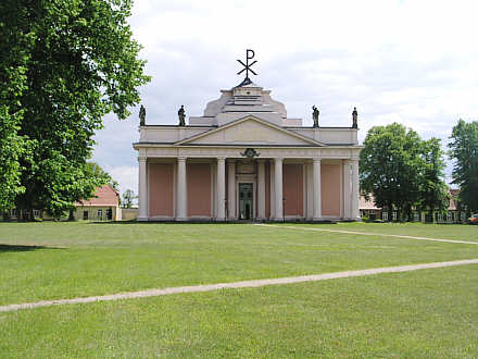 Evangel. Schlosskirche als Blickfang und Endpunkt der neu angelegten Barockstadt, 1765 - 70 von J.J.Busch errichtet. Begrenzung des ovalen Platzes "Am Bassin"