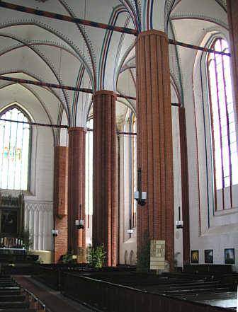 Mittelschiff und südliches Seitenschiff der dreischiffigen Hallenkirche.