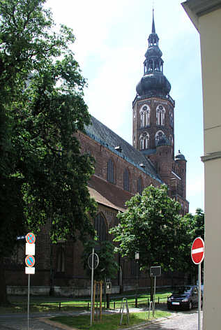 im 13. Jh. vollendete dreischiffige und fünfjochige Backstein-Hallenkirche