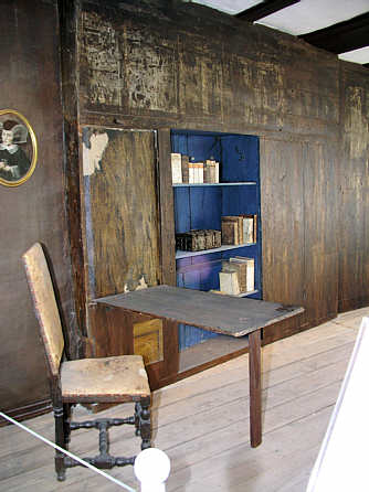 Kontor des Hausbesitzers. Wandschrank mit Klapptisch, Stuhl. Der Tisch konnte hochgeklappt werden, um für die Stube mehr Fläche zur Verfügung zu haben.