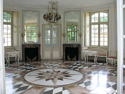 zur Kammer im Risalit zwei Spiegel, in denen sich die gegenüberliegenden