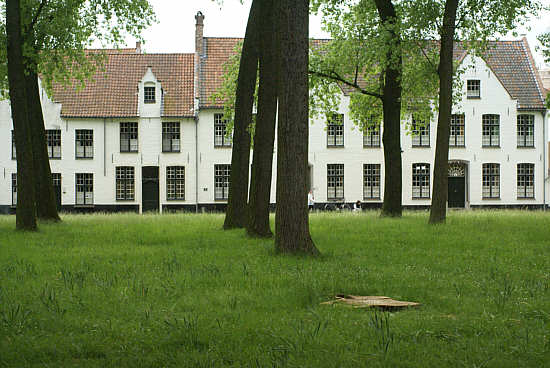 Die Häuser der Beginen gruppieren sich um einen baumbestandenen