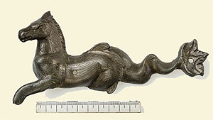 Bronzeapplik in Form eines Seepferdes, Fundort Bonn. Foto: Jürgen Vogel, LVR-LandesMuseum Bonn.