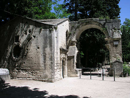 Reste der Kirche St. Césaire-le-Vieux am Eingang der Nekropole (Rundbogen des 12. Jahrhunderts).